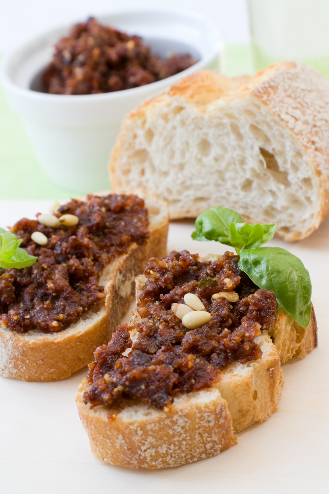 Hned po bazalkovém nejznámější pesto – ze sušených rajčat. Velká pochoutka! Pesto nemusí být pouze na těstovinách, skvělé je i v zapékaných toastech, nejrůznějších sendvičích nebo na jednohubkách.