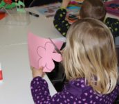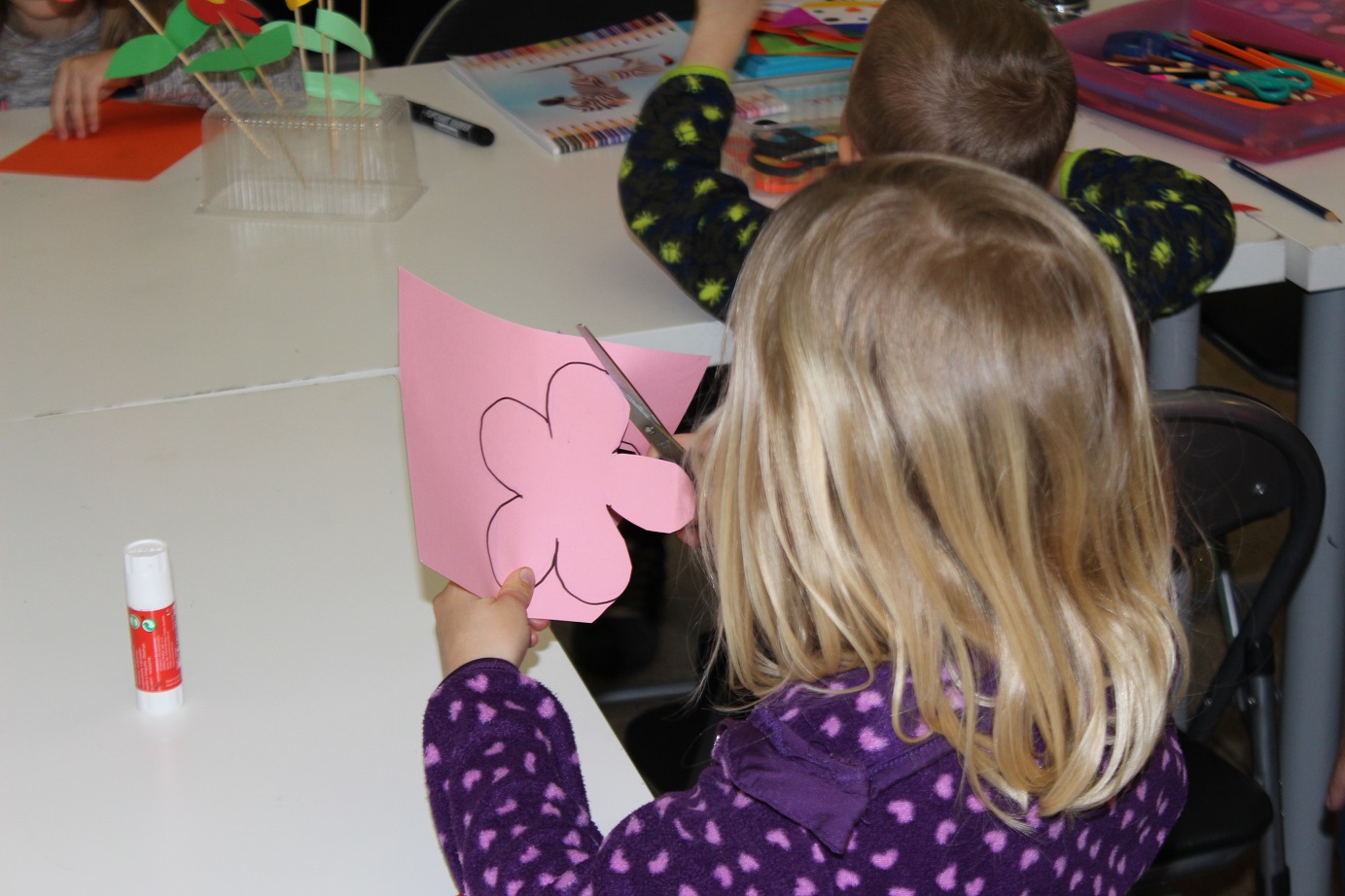 Tvořili jsme kytičky pro maminky a babičky.