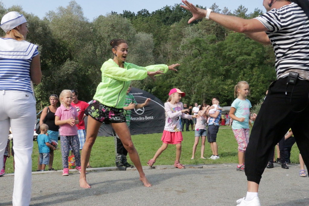Vše začalo rozcvičkou s Hankou Kynychovou a Jirkou Hadašem. Ten si ráno přivstal a převlékl se za piráta. To proto, aby vás připravil na hru, která se po celý den v Amfíku Bukovina konala – Honba za pirátských pokladem.