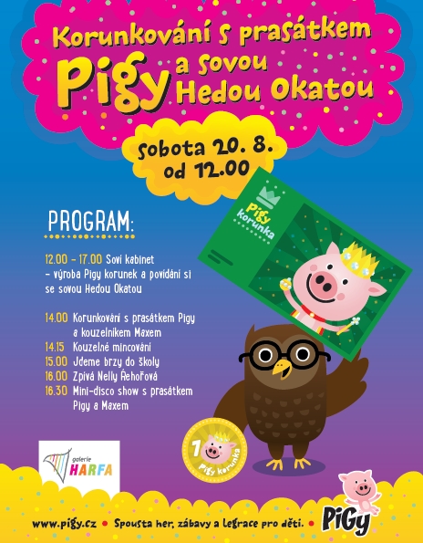 14.00 Korunkování s prasátkem Pigy a kouzelníkem Maxem