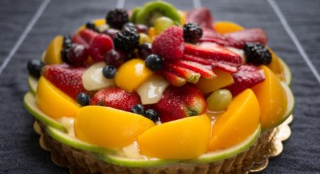 - Ovoce hezky naskládejte na těsto s polevou. Dort uchovávejte v chladu.