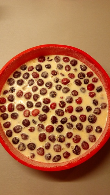 Teď si připravte formu. Nalijte do ní lžíci rozpuštěného másla a rozetřete ho po celém dně i po stranách. Formu vysypte asi 3 lžícemi cukru. Na dno vyskládejte třešně. Zalijte je těstem a šup s tím do trouby.