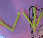 - Chlupaté drátky využijte na výrobu ptačích nožiček s třemi prsty. Drátek ohněte do tvaru písmene V a ustřihněte. Z další části drátku vyrobte prostřední prst.