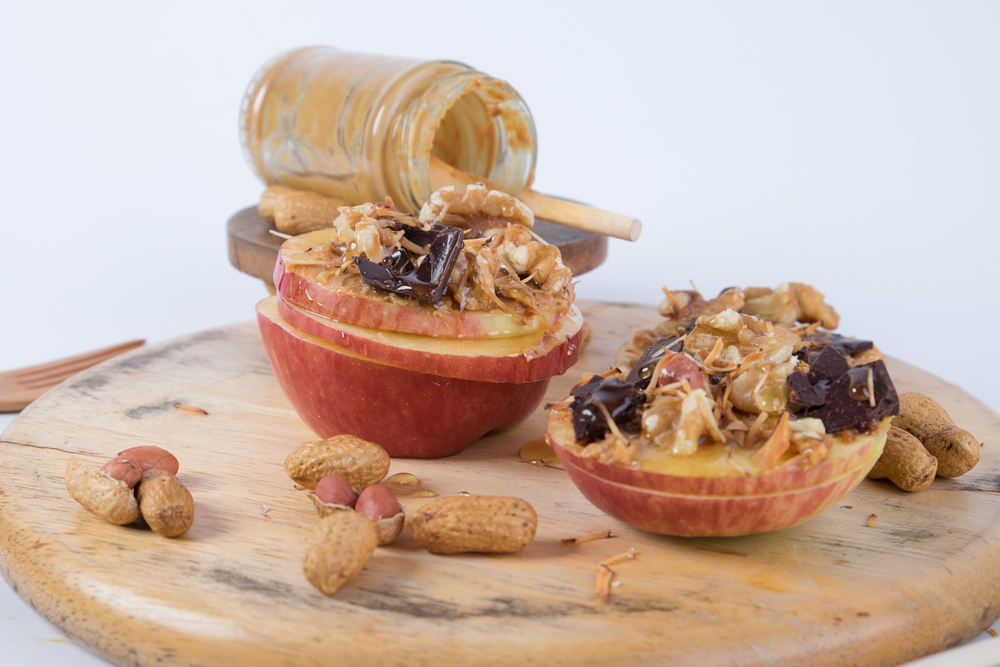 Jablíčka, arašídové máslo, oříšky a třeba ovesné vločky… Tahle svačinka zachutná kdykoliv. Třeba na vaší zahradní párty!