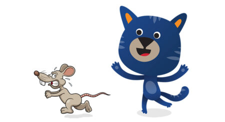- Jeden z hráčů bude myš a postaví se doprostřed kruhu/domečku. Jeden hráč se postaví vně kruhu – kočka.